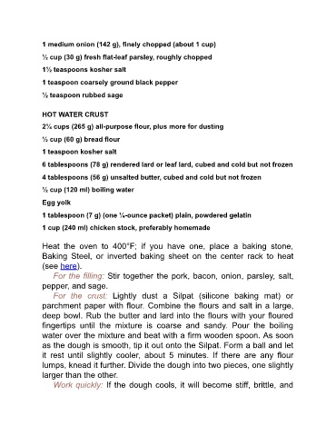 For the filling: Stir together the pork, bacon, onion, parsley, salt,