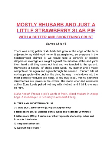 Make Ahead: Freeze a pie’s worth of fresh, sliced rhubarb in ziptop