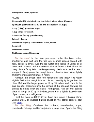 For the filling: Combine the rhubarb, strawberries, sugar,