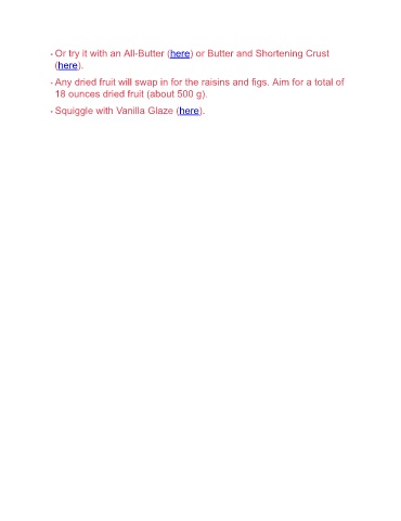 Or try it with an All-Butter (here) or Butter and Shortening Crust (here). Any dried fruit will swap in for the raisins and figs. Aim for a total of 18 ounces dried fruit (about 500 g). Squiggle with Vanilla Glaze (here).