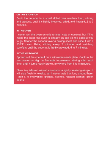 to go. Scatter the coconut over a baking sheet and slide it into a