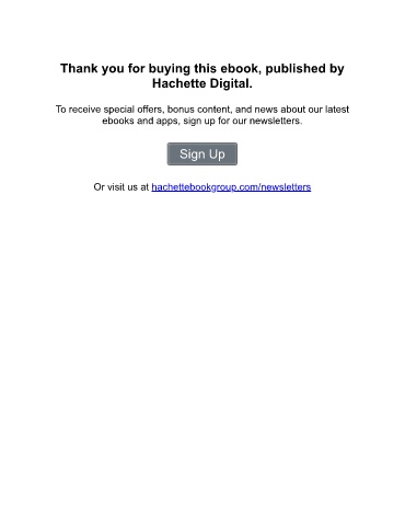 Thank you for buying this ebook, published by Hachette Digital. To receive special offers, bonus content, and news about our latest ebooks and apps, sign up for our newsletters. Sign Up Or visit us at hachettebookgroup.com/newsletters