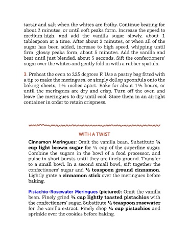 Pistachio-Ros ewater Meringues (pictured): Omit the vanilla