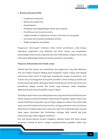 e. Kinerja pelayanan publik :