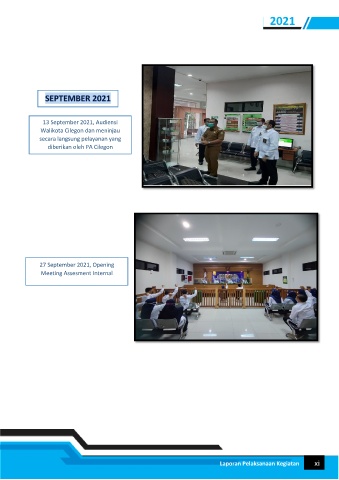 2021 13 September 2021, Audiensi Walikota Cilegon dan meninjau secara langsung pelayanan yang diberikan oleh PA Cilegon 27 September 2021, Opening Meeting Assesment Internal Laporan Pelaksanaan Kegiatan xi