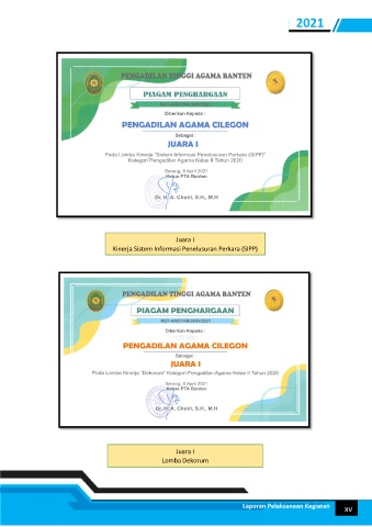 2021 Juara I Kinerja Sistem Informasi Penelusuran Perkara (SIPP) Juara I Lomba Dekorum s Laporan Pelaksanaan Kegiatan xv