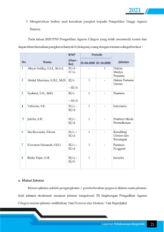 Pada tahun 2021 PNS Pengadilan Agama Cilegon yang telah memenuhi syarat dan