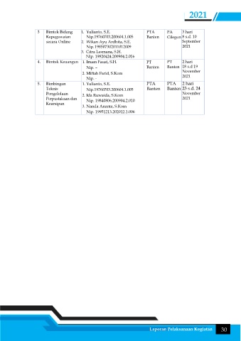 Laporan Pelaksanaan Kegiatan 30