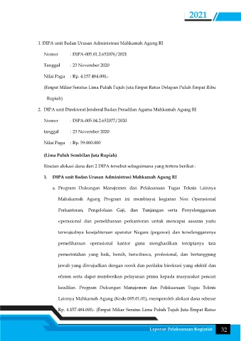 1. DIPA unit Badan Urusan Administrasi Mahkamah Agung RI