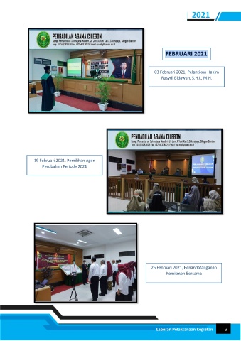 2021 03 Februari 2021, Pelantikan Hakim Rusydi Bidawan, S.H.I., M.H. 19 Februari 2021, Pemilihan Agen Perubahan Periode 2021 26 Februari 2021, Penandatanganan Komitmen Bersama Laporan Pelaksanaan Kegiatan v