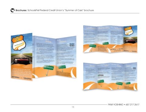 Thales Avionics presentation folder, catalog and spec sheets Brochures: SchoolsFirst Federal Credit Union’s “Summer of Cars” brochure PAM YOSHINO • 657.217.2617 11