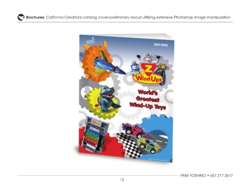 NRPI property brochure Brochures: California Creations catalog cover-preliminary layout utilizing extensive Photoshop image manipulation PAM YOSHINO • 657.217.2617 13