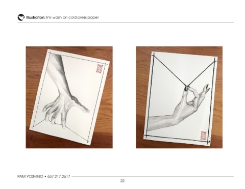 Illustration: Ink wash on cold press paper PAM YOSHINO • 657.217.2617 22