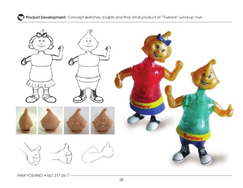 Product Development: Concept sketches, sculpts and final retail product of “Twisters” wind-up toys PAM YOSHINO • 657.217.2617 28