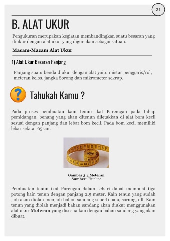 tenun yang diolah menjadi bahan sandang akan diukur menggunakan