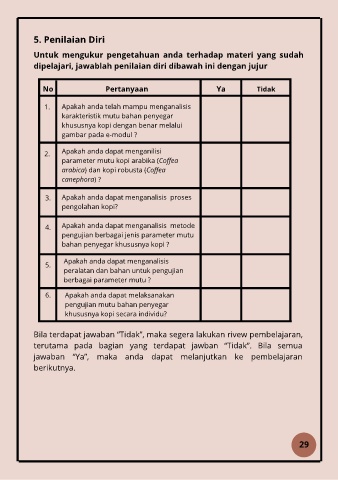 Bila terdapat jawaban “Tidak”, maka segera lakukan rivew pembelajaran,