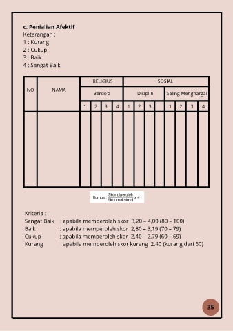 Baik : apabila memperoleh skor 2,80 – 3,19 (70 – 79)