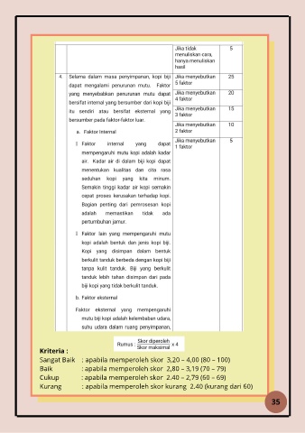 Kriteria : Sangat Baik : apabila memperoleh skor 3,20 – 4,00 (80 – 100) Baik : apabila memperoleh skor 2,80 – 3,19 (70 – 79) Cukup : apabila memperoleh skor 2.40 – 2,79 (60 – 69) Kurang : apabila memperoleh skor kurang 2.40 (kurang dari 60) 35