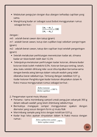 m2 :  adalah berat cawan, tutup dan cuplikan kopi setelah pengeringan