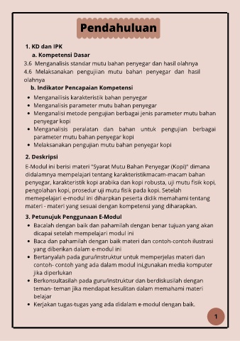 E-Modul ini berisi materi "Syarat Mutu Bahan Penyegar (Kopi)" dimana