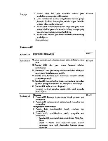 Penutup 1. Peserta didik dan guru membuat refleksi pada 10 menit