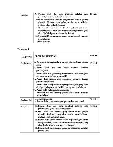 Penutup 9. Peserta didik dan guru membuat refleksi pada 10 menit