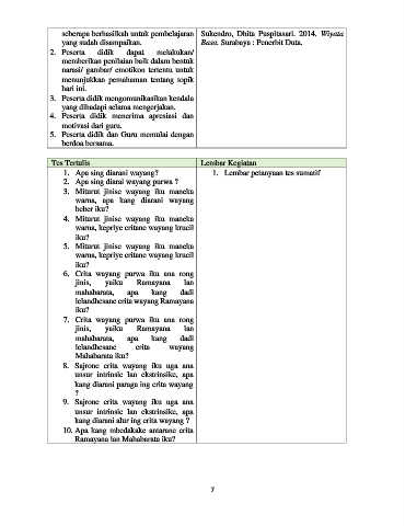 1. Apa sing diarani wayang? 1. Lembar petanyaan tes sumatif
