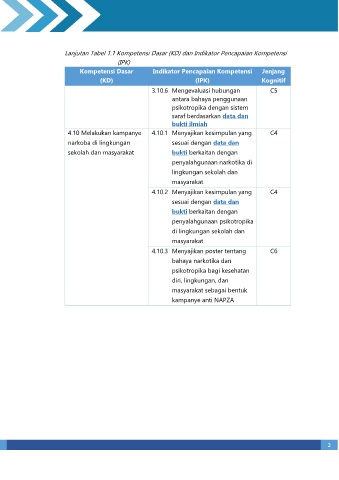 Lanjutan Tabel 1.1 Kompetensi Dasar (KD) dan Indikator Pencapaian Kompetensi