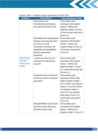 Lanjutan Tabel 1.3 Indikator Literasi Sains Menurut OECD 2019