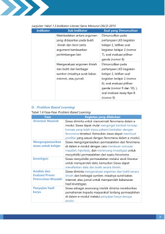 Lanjutan Tabel 1.3 Indikator Literasi Sains Menurut OECD 2019