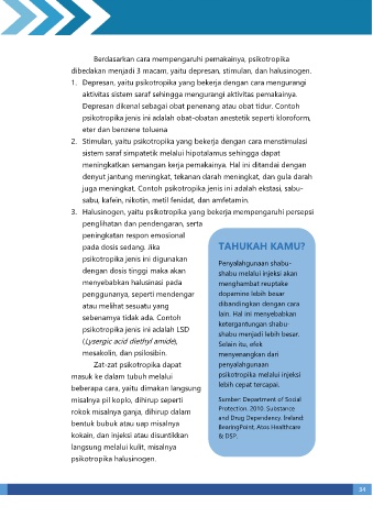 dibedakan menjadi 3 macam, yaitu depresan, stimulan, dan halusinogen.