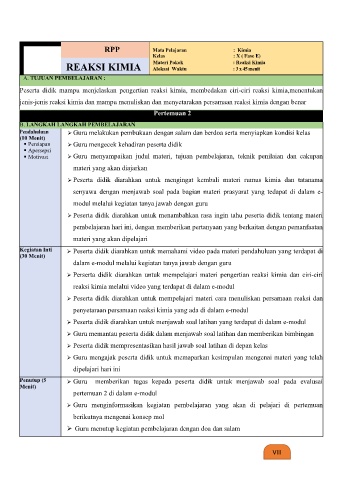 RPP Mata Pelajaran : Kimia