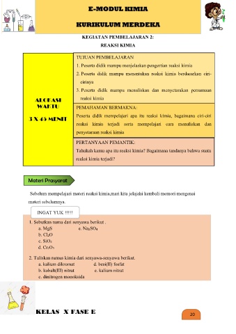 1. Peserta didik mampu menjelaskan pengertian reaksi kimia