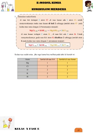 menyeterakannya maka ruas kanan di kali 2 sehingga jumlah atom Cl pada