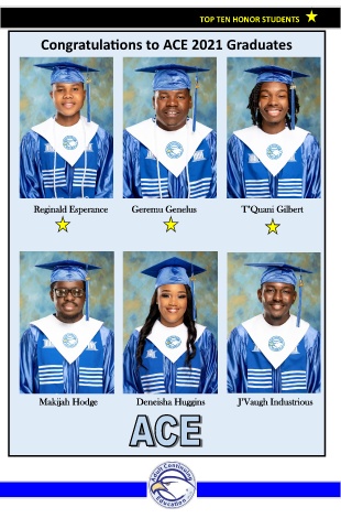 O R N H O N T S E ST U D N T TOP TEN HONOR STUDENTS O T E P Congratulations to ACE 2021 Graduates Reginald Esperance Geremu Genelus T’Quani Gilbert Makijah Hodge Deneisha Huggins J’Vaugh Industrious 9