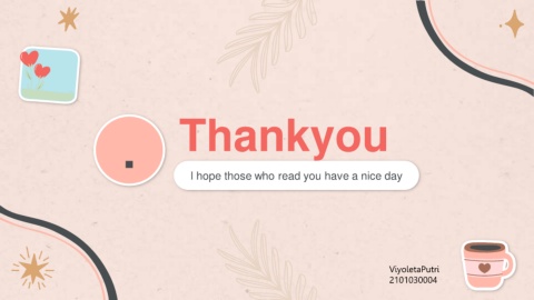 . Thankyou I hope those who read you have a nice day ViyoletaPutri 2101030004