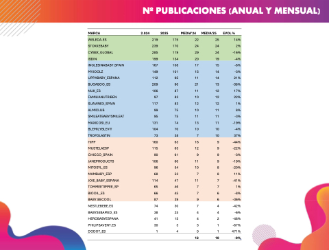 NUK_ES 106 87 11 12 FAMILIANUTRIBEN 97 83 10 12 SUAVINEX_SPAIN 117 83 12 12 ALMICLUB 99 75 10 11 SMILEATBABY/SMILEAT 95 75 11 11 MAXICOSI_EU 131 74 13 11 -19%