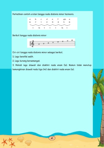 Ciri-ciri tangga nada diatonis minor sebagai berikut.