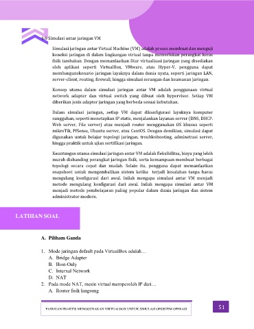 1. Mode jaringan default pada VirtualBox adalah…