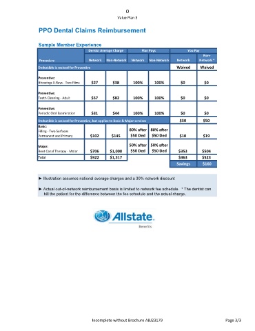 ► Actual out-of-network reimbursement basis is limited to network fee schedule. * The dentist can