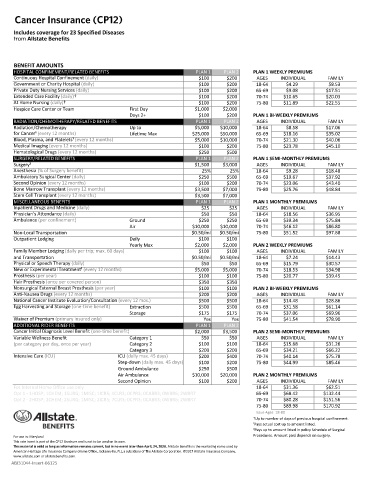 for Cancer¹ (every 12 months) Lifetime Max $25,000 $50,000 65-69 $18.16 $35.02