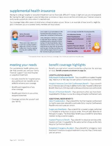 Our coverage helps offer peace of mind when a hospitalization occurs. Below is an example of how benefits might be