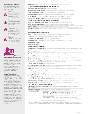 Cash benefits provide you with HOSPITAL CONFINEMENT AND RELATED BENEFITS