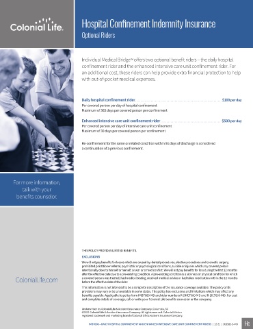 confinement rider and the enhanced intensive care unit confinement rider. For