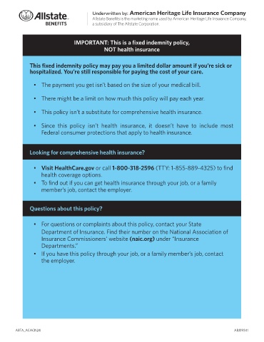 Allstate Benefits is the marketing name used by American Heritage Life Insurance Company,