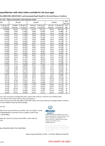 Allstate Benefits Group Whole Life Insurance (GWL) for Employee/Member with riders (when available for the issue age):  Allstate Benefits Group Whole Life Insurance (GWL) for Employee/Member with riders (when available for the issue age):