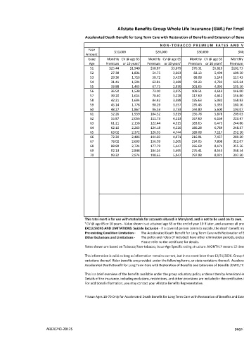 Accelerated Death Benefit for Long Term Care with Restoration of Benefits and Extension of Benefits (GWCLTCRE, GWCLTCRE1).  Allstate Benefits is the marketing name used by
