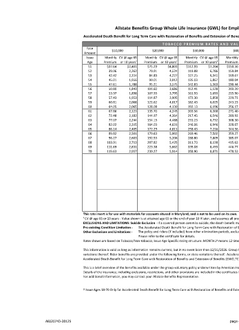 Accelerated Death Benefit for Long Term Care with Restoration of Benefits and Extension of Benefits (GWCLTCRE, GWCLTCRE1).  Allstate Benefits is the marketing name used by