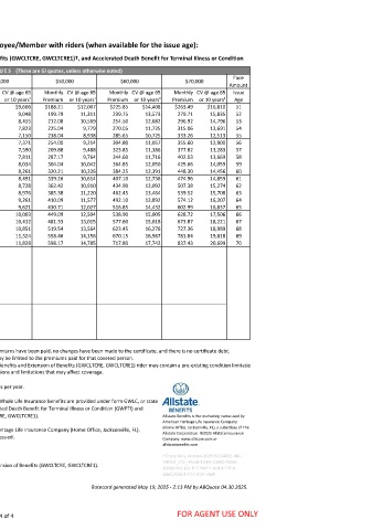 Allstate Benefits Group Whole Life Insurance (GWL) for Employee/Member with riders (when available for the issue age):