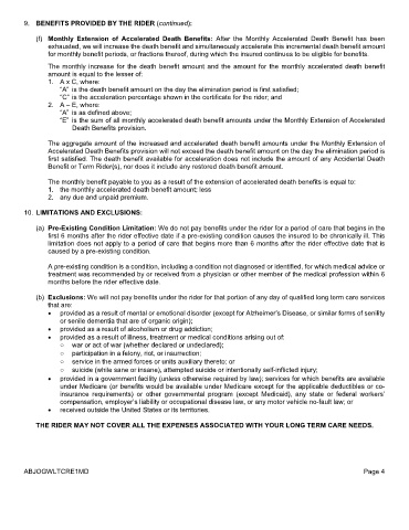 9. BENEFITS PROVIDED BY THE RIDER (continued):